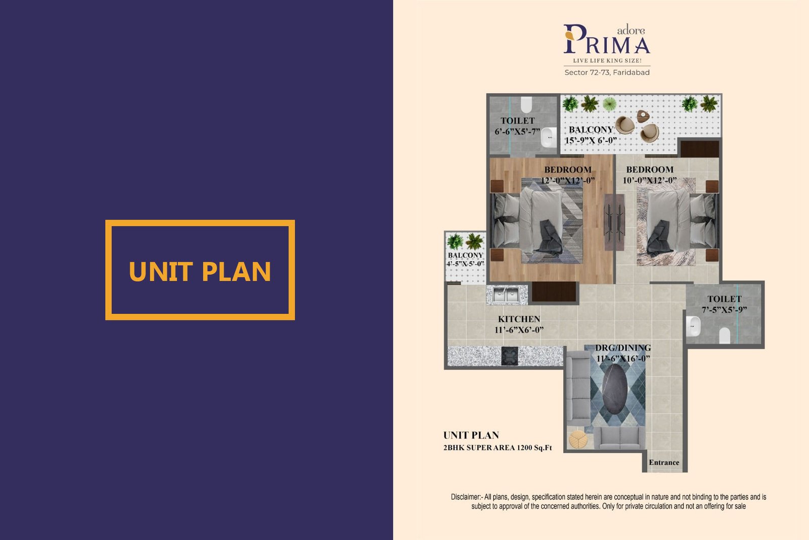 • Spacious Apartments: 2Bhk – Super Area 1200 sq. ft. | 4 Bhk – Super Area 1800 sq. ft.